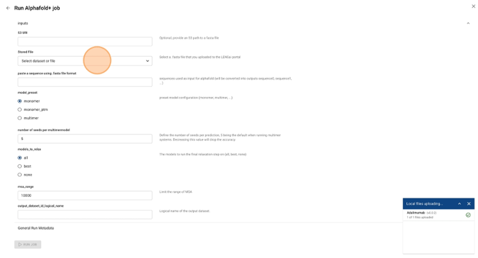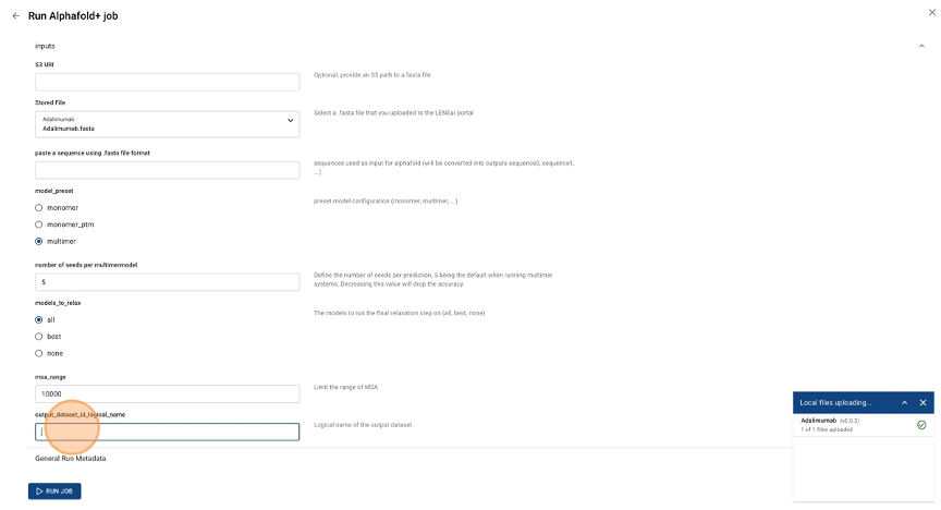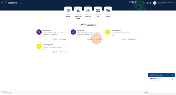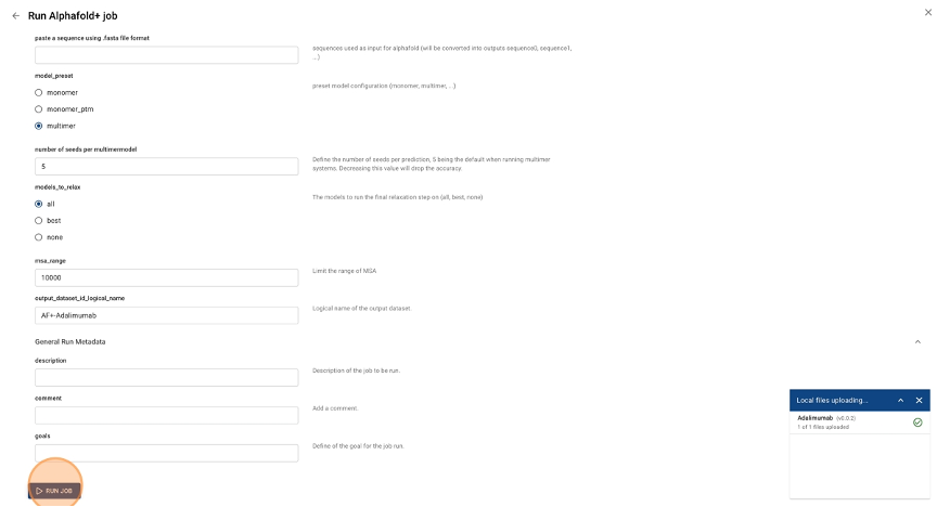 Step 2. Click "RUN JOB" on the AlphaFold+ icon